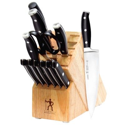 International Forged Premio 13 Piece Block Cutlery Set::16931-000 Features: -Blades are stain and rust resistant.-Forged blade.-Molded POM handles with brushed stainless-steel cap and rivets for comfortable grip and latest style.-Full bolster gives weight and be certains protectedty.-Comfortable grip and durability.-Dishwasher secure.-Made in Germany.-Sharpening steel: 9''.-Paring knife: 3''.-Serrated / utility knife: 5''.-Chef's knife: 8''.-Santoku hole edge knife: 7''. Construction: -High quality stainless steel construction. Color/Finish: -Blade finish: Satin. Collection: -International Forged Synergy assortment. Warranty: -Zwilling JA Henckels gives lifetime warranty once morest defects in subject matter and / or craftsmanship.. []